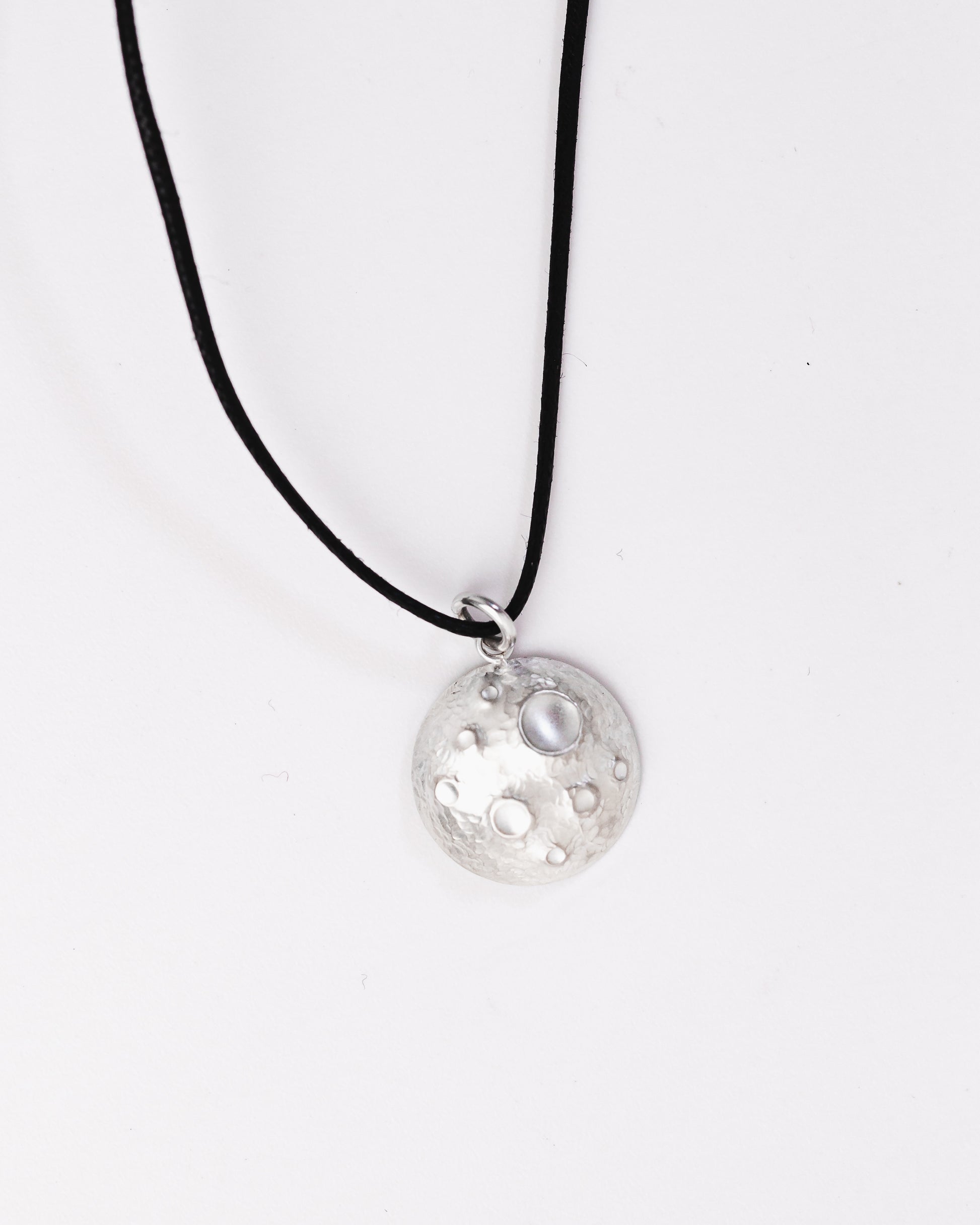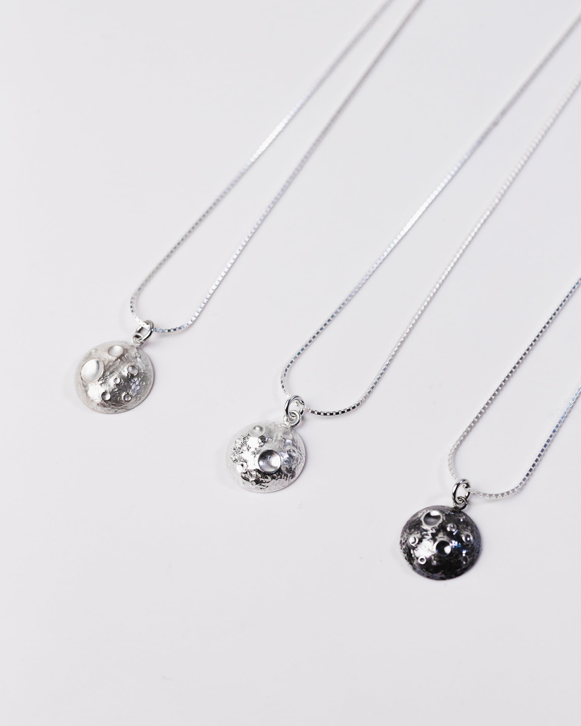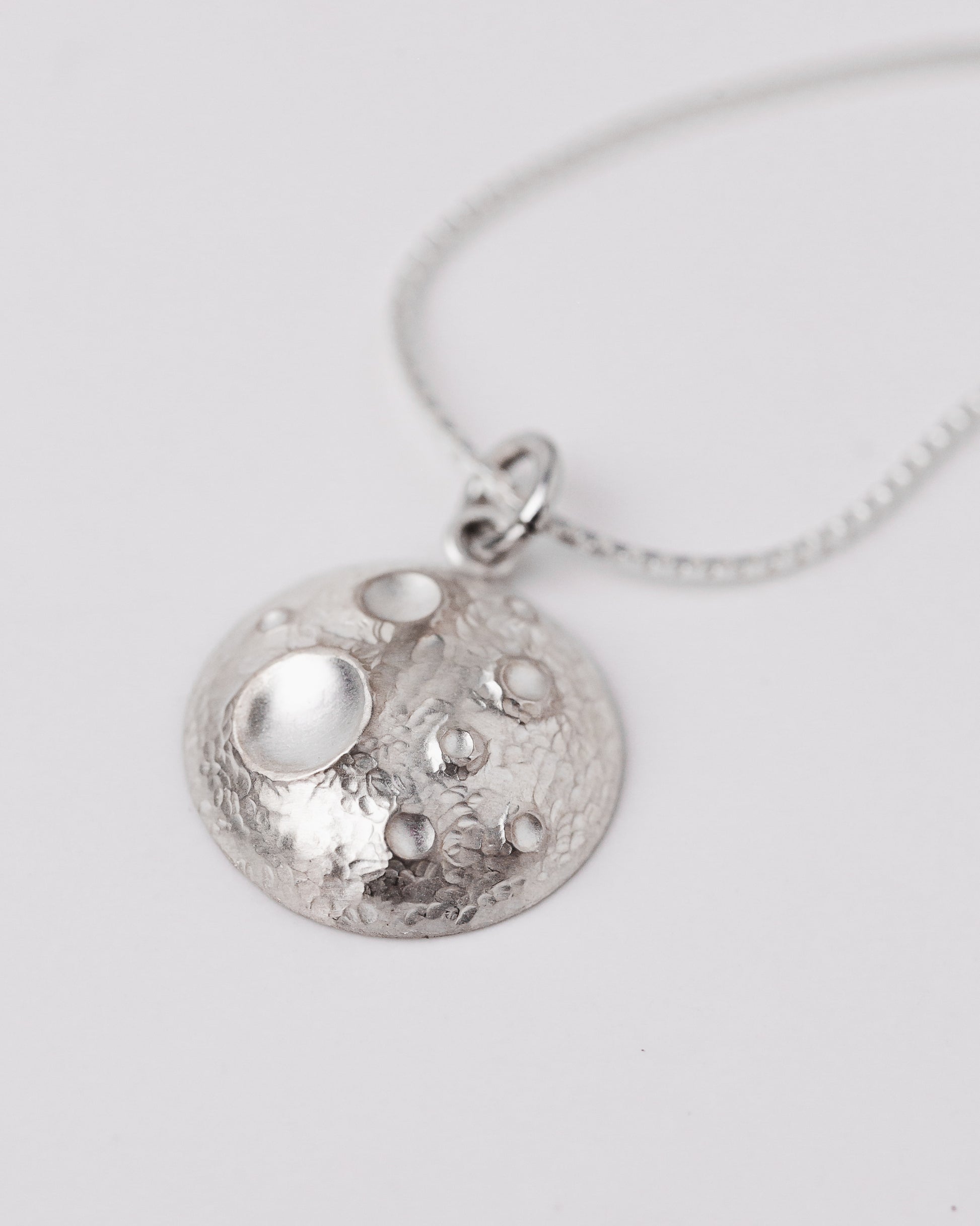 I paesaggi lunari diventano ispirazione per questa linea di gioielli realizzati con l'antica tecnica dello sbalzo e cesello. La texture, composta da crateri di diverse forme e dimensioni, varia tra un pezzo e un altro. E' per questo che ognuno di questi gioielli è considerato un pezzo unico e irripetibile.